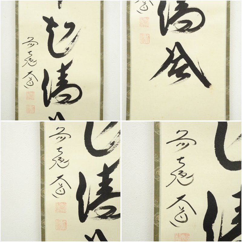 - 美術品・アンティーク・コレクション > 絵画 > 掛軸 前大徳 西垣宗興筆 一行書 「葉々起清風」 共箱 C 6085A 前大徳 西垣大道筆 「葉々起清風」一行書 肉筆紙本掛軸(共箱