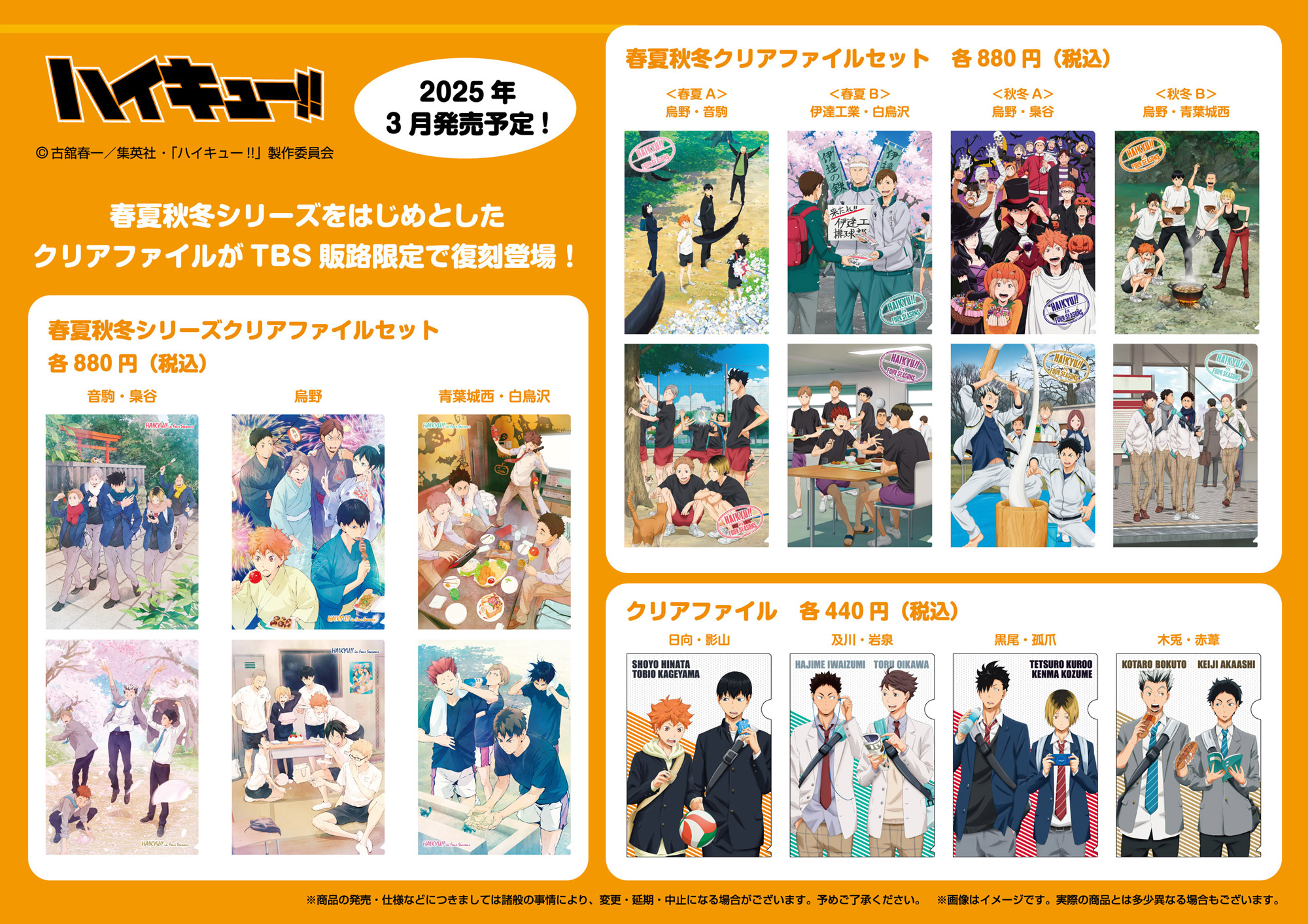 | 商品の特徴 | TOHO animation on X: 。文庫版】「ハイキュー!! ショーセツバン!! 春夏秋冬」全巻。71-HbtWBGML._AC_SY200_QL15_.jpg。2025年最新】ハイキュー クリアファイル 春夏秋冬の人気アイテム。ハイキュー!!春夏秋冬シリーズクリアファイルセット青葉城西 & 白鳥沢音駒 & 梟谷即購入可能バラ売り不可 | ||