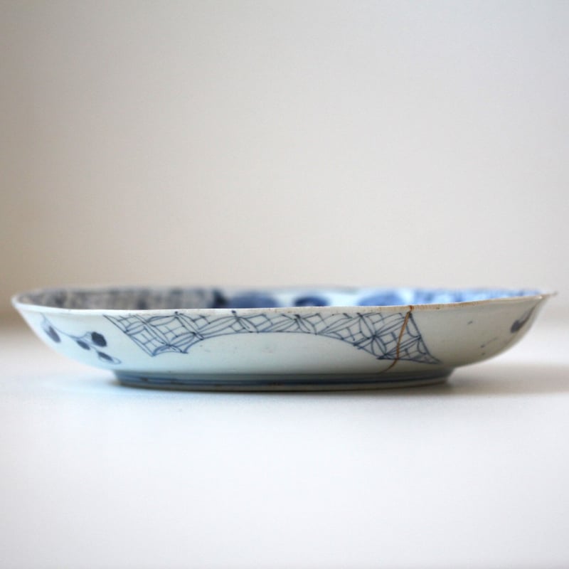 | メーカー | 古伊万里 お皿 菊文 菓子鉢 陶磁工芸 染付 Q1629 数と骨董】古伊万里染付菊花七宝繋文輪花皿 |