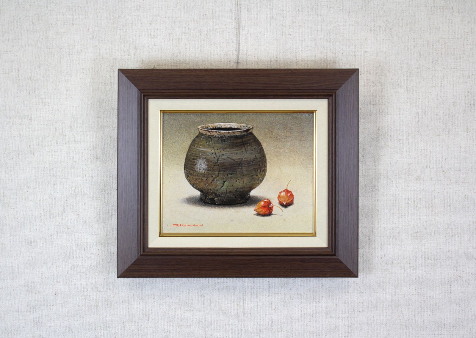 | メーカー名 | e75fb45 | ブランド名 | ☆小阪正次☆「壺とほうずき」油絵 F4号 ◇一枚の繪人気画家◇ 小阪正次『水差しとほうずき』油彩画【真作保証】 |