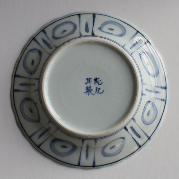 - 美術品・アンティーク・コレクション > 工芸品 > 変形皿 舟形 染付 2客 銘 古伊万里 明治 変わり図柄 芙蓉手 P-118 古伊万里 KOIMARI 染付 芙蓉手 龍文中皿 | imarimaru