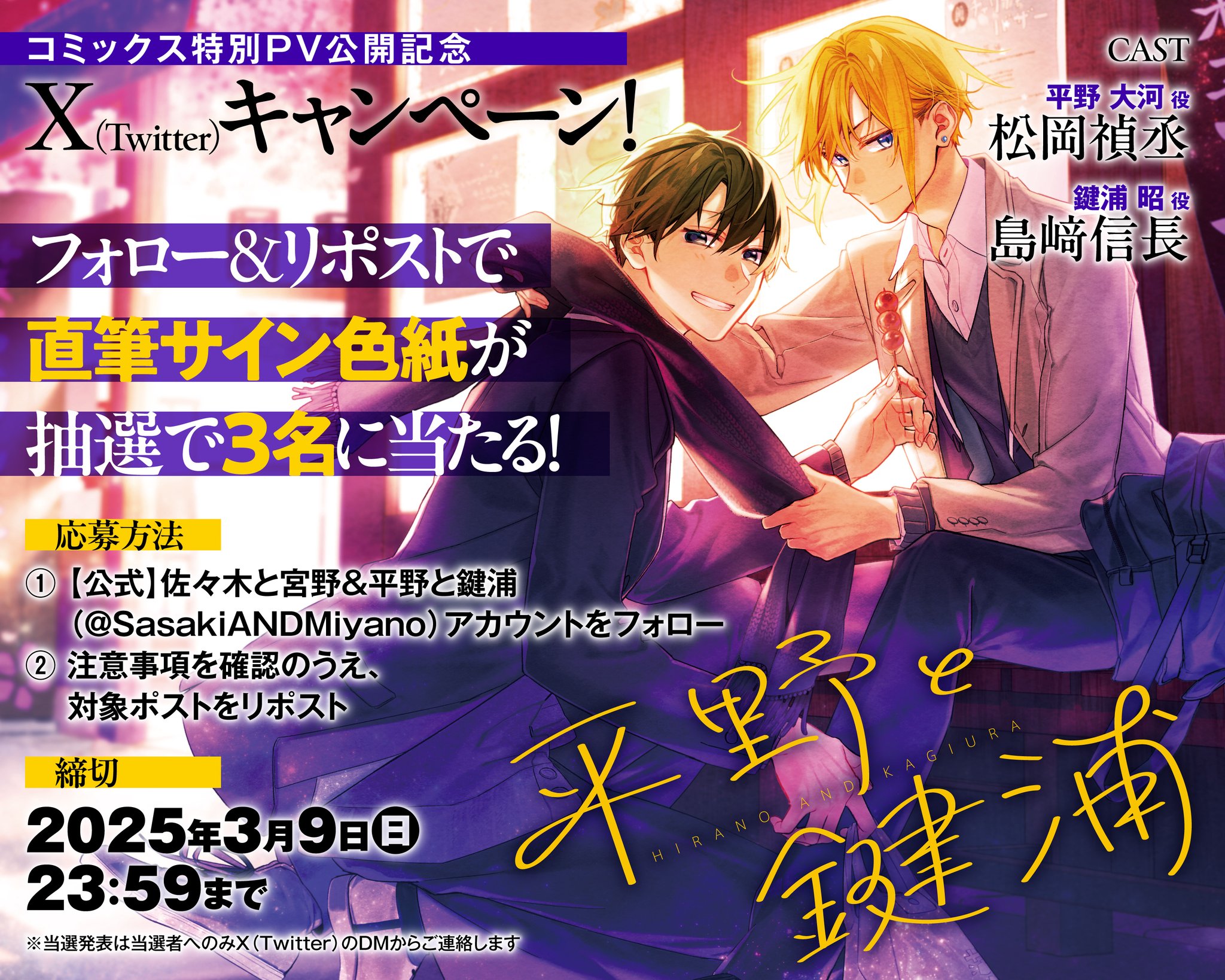 | 商品の特徴 | Gkw6RUUaoAQ7JFS.jpg:large。映画「佐々木と宮野─卒業編─」/同時上映短編「平野と鍵浦。公式】佐々木と宮野&平野と鍵浦 on X: 。GDxy87JbIAA8Rkb.jpg。鍵浦役 島崎信長平野役 松岡禎丞新橋役 花江夏樹佐々木役 白井悠介半澤役 内田雄馬上記の声優さんの直筆サイン色紙です2022年5/13発売のジーン6月号コミックジーンの企画にて当選して頂いたものですが、断捨離のため出品させていただきます平野と鍵浦佐々木と宮野島崎信長さんの代表作・Free!(七瀬遙)・ブルーロック(凪誠士郎)・ソードアート・オンライン アリシゼーション(ユージオ)・WIND BREAKER(蘇枋隼飛)・フルーツバスケット(草摩由希)・寄生獣 セイの格率(泉新一)・バキ(範馬刃牙)・呪術廻戦(真人)・俺物語!!(砂川誠)・Fate/Grand Order(藤丸立香)松岡禎丞さんの代表作ソードアート・オンライン(キリト / 桐ヶ谷和人)・ノーゲーム・ノーライフ(リク、空)・食戟のソーマ(幸平創真)・鬼滅の刃(嘴平伊之助)・ダンジョンに出会いを求めるのは間違っているだろうか(ベル・クラネル)・五等分の花嫁(上杉風太郎)・神様のメモ帳(藤島鳴海)・冴えない彼女の育てかた(安芸倫也)・TRIGUN STAMPEDE(ヴァッシュ・ザ・スタンピード)花江夏樹さんの代表作・東京喰種トーキョーグール(金木研/佐々木琲世)・鬼滅の刃(竈門炭治郎)・四月は君の嘘(有馬公生)・ディズニー ツイステッドワンダーランド(リドル・ローズハート)・ヴァニタスの手記(ヴァニタス)・サマータイムレンダ(網代慎平)・Paradox Live(棗リュウ)・東京リベンジャーズ(九井一)・機動戦士ガンダム 水星の魔女(エラン・ケレス)白井悠介さんの代表作・美男高校地球防衛部LOVE!(鳴子硫黄)・ヒプノシスマイク(飴村乱数)・アイドリッシュセブン(二階堂大和)・アイドルマスター SideM(若里春名)・戦闘員、派遣します!(戦闘員六号)内田雄馬さんの代表作・呪術廻戦(伏黒恵)・ブルーロック(御影玲王)・WIND BREAKER(桜遥)・BANANA FISH(アッシュ・リンクス)・フルーツバスケット(草摩夾)・マクロスΔ(ハヤテ・インメルマン)・りゅうおうのおしごと!(九頭竜八一)・アイドルマスター SideM(桜庭薫)・うたの☆プリンスさまっ♪(鳳瑛二) | ||
